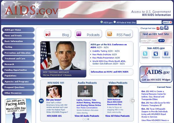 Salah satu media untuk sosialisasi adalah website. Mungkin kita coba belajar dari Pemerintah Amerika Serikat (AS) yang mempunyai media website Aids.gov sebuah media pemerintah AS untuk sosialisasi kegiatan penanggulangan HIV/AIDS. Sangat lengkap informasinya, mulai dari News & Events, Basic Information, Testing, Prevention & Education, Treatment & Care, Research, Funding Opportunities, Populations, Agencies & Programs. Disini disediakan kebutuhan bagi pihak-pihak yang ingin terlibat langsung dalam penanggulangan AIDS maupun juga untuk halayak umum. INformasi yang dipaparkan juga sangat jelas dengan didukung oleh statistik AIDS termasuk hasil-hasil penelitian seputar penyakit ini.Penanggulangan penyakit HIV/AIDS Online